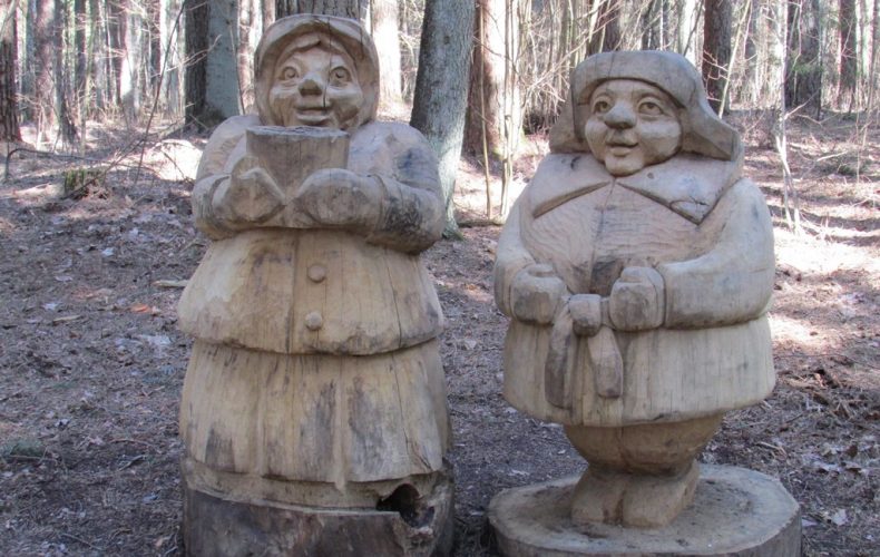 Sammalrajal võib kohtuda ka mõisahärra ja mustlasega, metsamehega ja paljude värvikate tegelastega, kes on valmistatud puust – Tauķienė ja Plauķienė, Ciepsliņa, Radzieni…